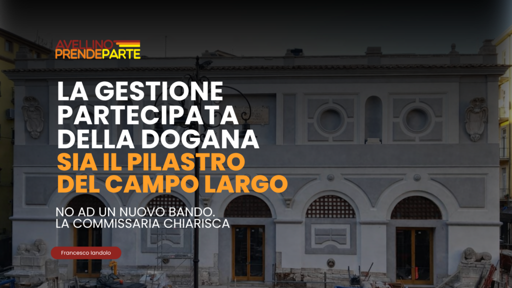 App: la gestione partecipata della dogana sia il pilastro del campo largo. No ad un nuovo bando, la commissaria chiarisca – C’è un elemento che lascia perplessi nella gestione della Dogana di Avellino, ed è la sequenza delle decisioni assunte nelle ultime settimane.