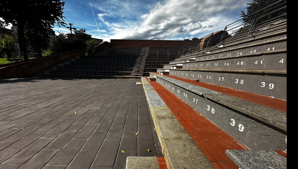 Gli operai sono riusciti a ripristinare finalmente i bagni pubblici, anche se funzioneranno soltanto durante gli eventi. Le sedute sono state completamente ricostruite e soprattutto numerate e illuminate, offrendo circa 400 posti a sedere. La pavimentazione infine è stata sostituita con una nuova di zecca. A testimoniare questo rinnovamento sono anche i castagni che circondano l’anfiteatro. Alberi storici che, dopo anni di trascuratezza, sono tornati a produrre frutti, donando all’area un’atmosfera accogliente.