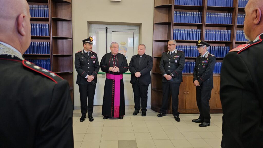 Nel corso dell’incontro, l’Arcivescovo ha espresso parole d’apprezzamento per il quotidiano ed instancabile impegno dei militari della Benemerita per garantire, in ogni angolo del Paese, la civile convivenza nel rispetto delle regole, frutto di un impegno e di una prossimità al popolo italiano che sin dalle sue origini connota la presenza dei Carabinieri sul territorio, portando altresì solidarietà e conforto ai militari ed alle loro famiglie.
