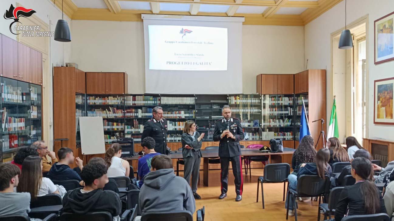 All’iniziativa hanno partecipato circa novanta studenti del biennio (classi prime e seconde), ai quali sono stati illustrati, attraverso la proiezione di slides e filmati, i vari ambiti operativi dell’Arma dei Carabinieri, con particolare attenzione alle attività di tutela e vigilanza svolte quotidianamente a difesa del patrimonio naturale. Un momento significativo è stato dedicato al confronto diretto con gli studenti, che hanno partecipato con interesse, ponendo domande e condividendo riflessioni sui temi della tutela dell’ambiente e della legalità oltre al tema del vincolo idrogeologico e dei fenomeni di dissesto, illustrando le azioni di controllo e monitoraggio svolte dai Carabinieri per prevenire interventi non autorizzati sul territorio e contrastare comportamenti che possano compromettere la sicurezza delle comunità. Nel corso dell’incontro, gli studenti sono stati stimolati a riflettere sull’importanza delle piante, spesso trascurate non solo dal punto di vista scientifico, ma anche a livello percettivo ed emotivo. È stato approfondito il fenomeno della “plant blindness” (cecità alle piante), ovvero la difficoltà diffusa nel riconoscere e valorizzare il mondo vegetale. Da questa riflessione è emersa una domanda significativa: come possiamo proteggere la natura se non siamo in grado nemmeno di percepirla pienamente? In questa prospettiva, il tema dell’educazione ambientale si intreccia profondamente con quello della legalità: prendersi cura dell’ambiente significa infatti sviluppare senso civico, rispetto delle regole e responsabilità verso la collettività. L’incontro ha rappresentato un’importante occasione di sensibilizzazione e formazione civica, contribuendo a rafforzare nei giovani la consapevolezza del valore dell’ambiente e del ruolo che le nuove generazioni possono assumere come custodi della natura e promotori della legalità.