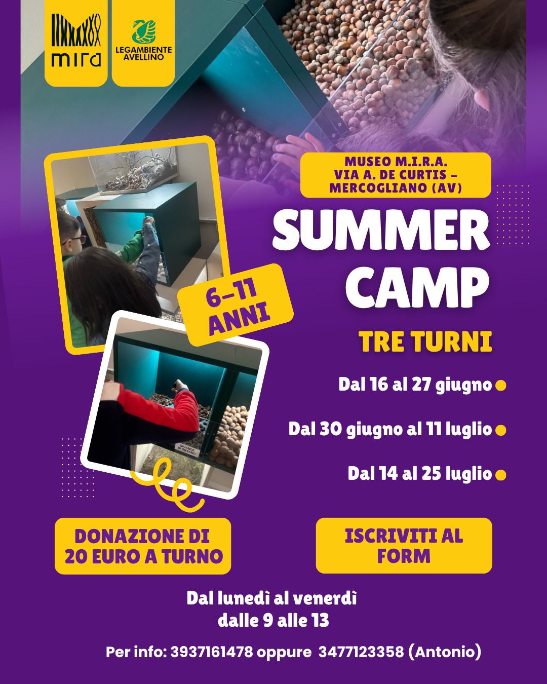 Avellino, 9 giugno 2025 – Legambiente Avellino lancia una nuova iniziativa per l’estate 2025: arrivano i Summer Camp al Museo M.I.R.A. – Museo Irpino delle Radici Aumentate di Mercogliano, rivolti a bambine e bambini dai 6 agli 11 anni. Tre turni in programma, tra giugno e luglio, per vivere un’esperienza unica all’insegna di gioco, esplorazione e sostenibilità.