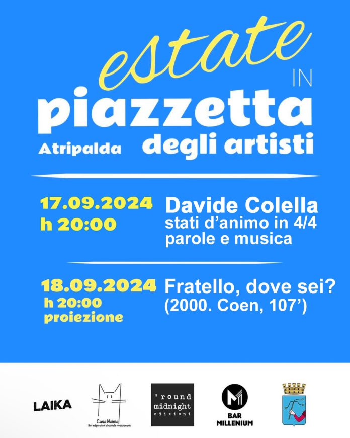 La stagione estiva volge al termine, ma l’associazione culturale Laika non intende concluderla senza un degno saluto. Nonostante le previsioni meteo avverse delle scorse settimane abbiano causato ben due rinvii, la rassegna “Estate in piazzetta” ricomincia. Due le serate gratuite organizzate da Laika in collaborazione con il Bar Millennium e il patrocinio del Comune di Atripalda: Martedì 17 e mercoledì 18 settembre.