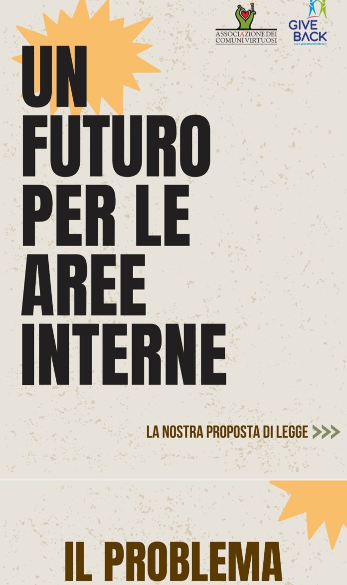 associazione Give Back Giovani-Aree Interne ha lanciato una petizione su Change.org per sostenere una proposta di legge dedicata alle aree interne, che nel nostro Paese rappresentano oltre il 60% del territorio nazionale ma che sono spesso trascurati dalle politiche nazionali e dall’opinione pubblica. La proposta nasce dall’esperienza del policy lab “Yes I Am” organizzato tra luglio e agosto 2025 a Bagnoli Irpino, coinvolgendo cinquanta giovani provenienti da tutta Italia con background diversi (amministratori, ricercatori, professionisti, semplici appassionati).