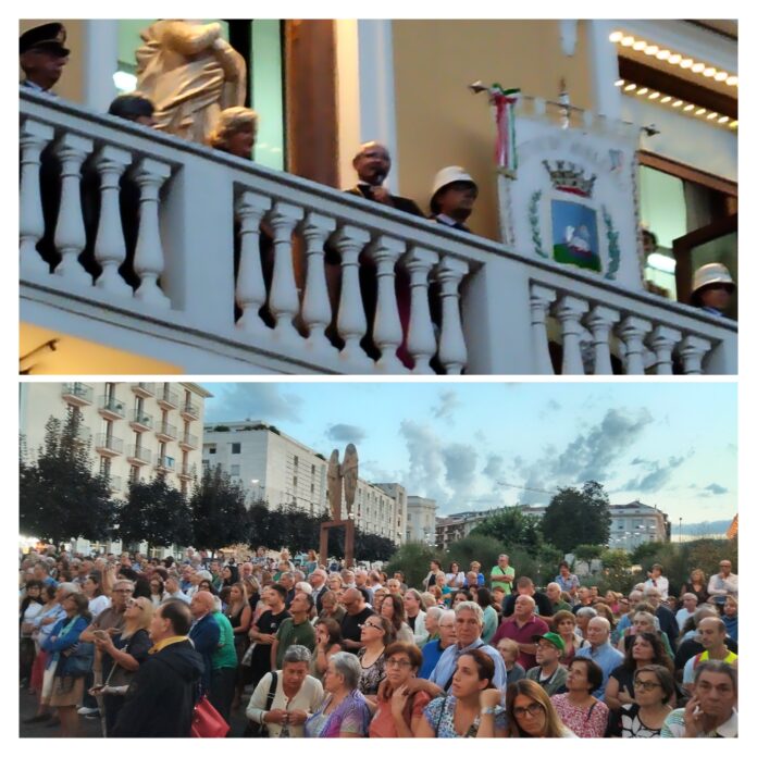 In occasione della tradizionale festa patronale dell’Assunta e di Sant’Anna, il commissario prefettizio del Comune di Avellino, dottoressa Giuliana Perrotta, ha tenuto il suo primo discorso pubblico dal balcone del Palazzo Vescovile.