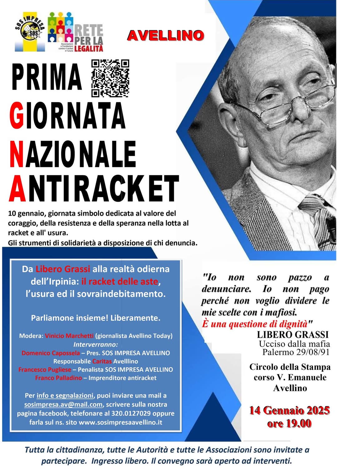 Avellino Celebra la Prima Giornata Nazionale Antiracket – 14 Gennaio 2025: SoS Impresa Avellino celebra la Prima Giornata Nazionale Antiracket con l’evento: