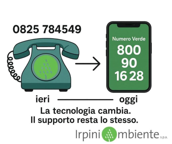 Dal 1° dicembre cambia il riferimento telefonico per l’assistenza ai cittadini: lo storico 0825-784549 sarà dismesso per lasciare spazio al nuovo Numero Verde 800 90 16 28, gratuito e più semplice da ricordare. Un aggiornamento pensato per rendere i servizi più accessibili e immediati. Il Numero Verde sarà a disposizione per la prenotazione del ritiro di ingombranti e RAEE, per la gestione dei reclami e per la richiesta di informazioni sui servizi. La linea sarà operativa dal lunedì al venerdì, dalle 8:30 alle 16:30, mentre resterà chiusa il sabato, la domenica e nei giorni festivi.In caso di emergenze, una risponderia automatica indicherà il numero attivo 24 ore su 24 da contattare. L’introduzione del nuovo numero rappresenta un passo avanti verso un rapporto ancora più diretto ed efficiente con l’utenza. Cambia il contatto, ma resta immutato l’impegno nel garantire supporto e vicinanza ai cittadini.