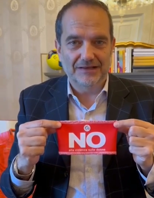 In foto Matteo Marani, presidente della Lega Pro che attraverso un video pubblicato sulla pagina Lega Pro lancia il messaggio: “noallaviolenzasulledonne #25novembre”