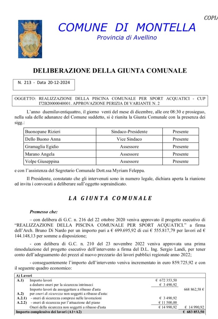 L’opera non è un progetto marginale; al contrario, rappresenta un investimento di elevata entità economica per la collettività. Il costo complessivo ammonta a € 859.725,92, una cifra sostenuta prevalentemente da finanziamenti pubblici, ma con un onere diretto a carico dei cittadini: € 699.965,92 sono pervenuti dai fondi del bando “Sport e Periferie” (2020), erogati dalla Presidenza del Consiglio dei Ministri, mentre la restante quota è stata coperta da risorse proprie dell’amministrazione, attraverso un mutuo che graverà sulle finanze comunali. Di conseguenza, i cittadini non sono solo i fruitori (limitati a tre mesi l’anno) di questa struttura, ma saranno anche i garanti del suo debito.Alla situazione si aggiunge un ulteriore elemento di criticità gestionale. Il bando per l’assegnazione della piscina è andato deserto.