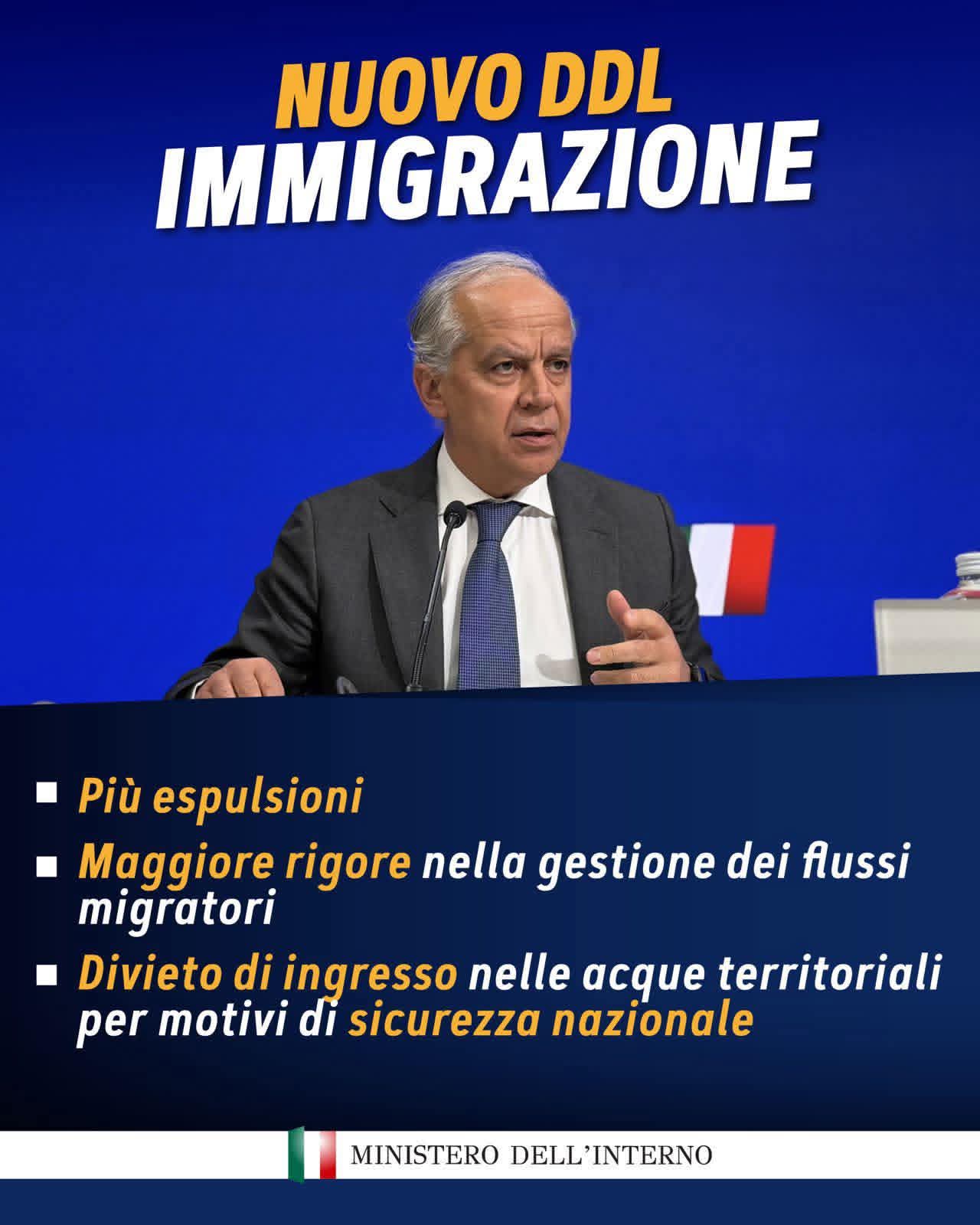 introduce una serie di misure volte a rendere più efficace la gestione dei flussi migratori e a rafforzare il sistema delle espulsioni. Tra gli interventi previsti, strumenti per garantire maggiore rapidità e incisività nelle procedure di rimpatrio e nuove disposizioni in materia di sicurezza. Il provvedimento contempla inoltre la possibilità di vietare l’ingresso nelle acque territoriali italiane per motivi di sicurezza nazionale. “I confini dell’Italia sono i confini dell’Europa. Difenderli è un dovere”, ha sottolineato Piantedosi, ribadendo la linea del Governo sulla necessità di un controllo più rigoroso delle frontiere, nel quadro delle nuove regole europee su migrazione e asilo.