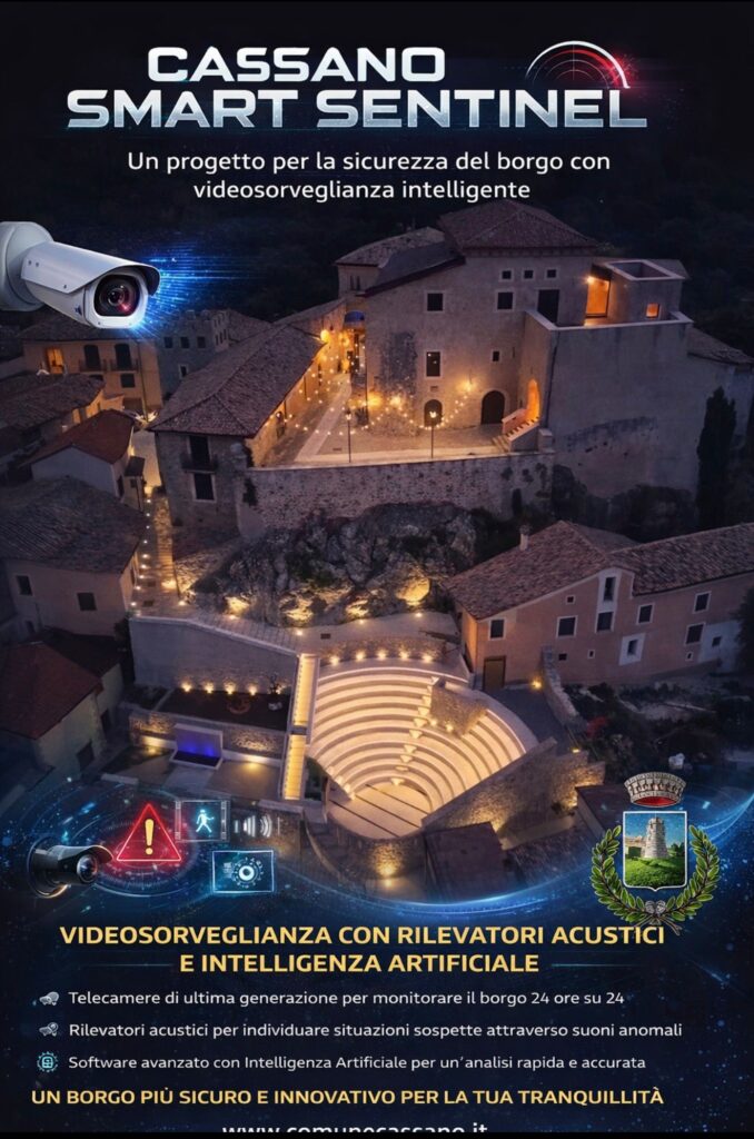 Per la sicurezza urbana a Cassano Irpino, parte il progetto “Cassano Smart Sentinel” – A Cassano Irpino prende forma un innovativo progetto di sicurezza urbana grazie al riconoscimento di un contributo ministeriale superiore a 280.000 euro, il più alto assegnato in Irpinia per interventi di videosorveglianza. Il finanziamento consentirà la realizzazione di un impianto tecnologicamente avanzato, basato sull’integrazione di telecamere intelligenti, sensori acustici e sistemi di intelligenza artificiale, in grado di rafforzare in modo significativo il controllo del territorio e la prevenzione dei fenomeni criminosi. Il progetto, denominato “Cassano Smart Sentinel”, si propone come iniziativa pilota in tema di sicurezza urbana, con soluzioni innovative pensate per un borgo di piccole dimensioni dove è importante prevenire, proteggere e dare fiducia. Una idea ad alta vocazione comunitaria.Soddisfazione è stata espressa dal Sindaco Salvatore Vecchia.“Un finanziamento di questa portata ci permette di realizzare un progetto di sicurezza all’avanguardia, capace di coniugare tecnologia, prevenzione e tutela dei cittadini.