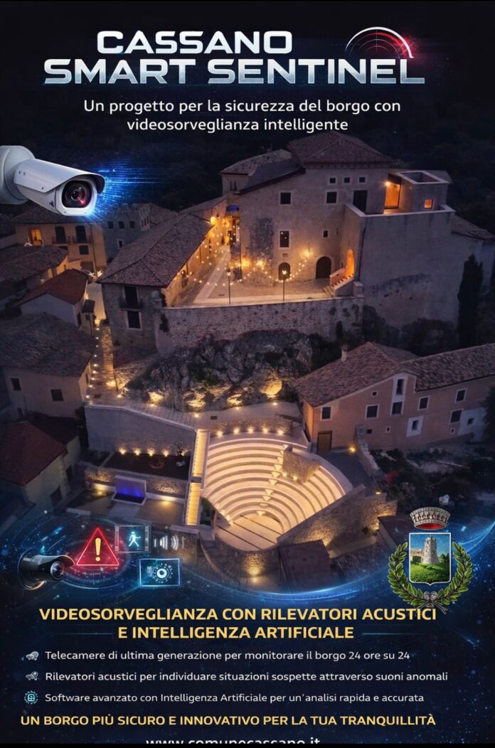 Per la sicurezza urbana a Cassano Irpino, parte il progetto “Cassano Smart Sentinel” – A Cassano Irpino prende forma un innovativo progetto di sicurezza urbana grazie al riconoscimento di un contributo ministeriale superiore a 280.000 euro, il più alto assegnato in Irpinia per interventi di videosorveglianza. Il finanziamento consentirà la realizzazione di un impianto tecnologicamente avanzato, basato sull’integrazione di telecamere intelligenti, sensori acustici e sistemi di intelligenza artificiale, in grado di rafforzare in modo significativo il controllo del territorio e la prevenzione dei fenomeni criminosi. Il progetto, denominato “Cassano Smart Sentinel”, si propone come iniziativa pilota in tema di sicurezza urbana, con soluzioni innovative pensate per un borgo di piccole dimensioni dove è importante prevenire, proteggere e dare fiducia. Una idea ad alta vocazione comunitaria.Soddisfazione è stata espressa dal Sindaco Salvatore Vecchia.“Un finanziamento di questa portata ci permette di realizzare un progetto di sicurezza all’avanguardia, capace di coniugare tecnologia, prevenzione e tutela dei cittadini.