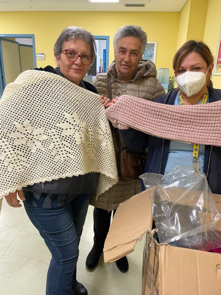 Il progetto “Portiamo una carezza”, coordinato dall’associazione con sede in Sardegna e presieduta da Liana Masiu, coinvolge volontari e volontarie provenienti da tutta Italia che realizzano a mano scialli e manufatti poi inviati e smistati in base alle esigenze dei reparti ospedalieri. Una rete solidale che unisce territori diversi con un unico obiettivo:
