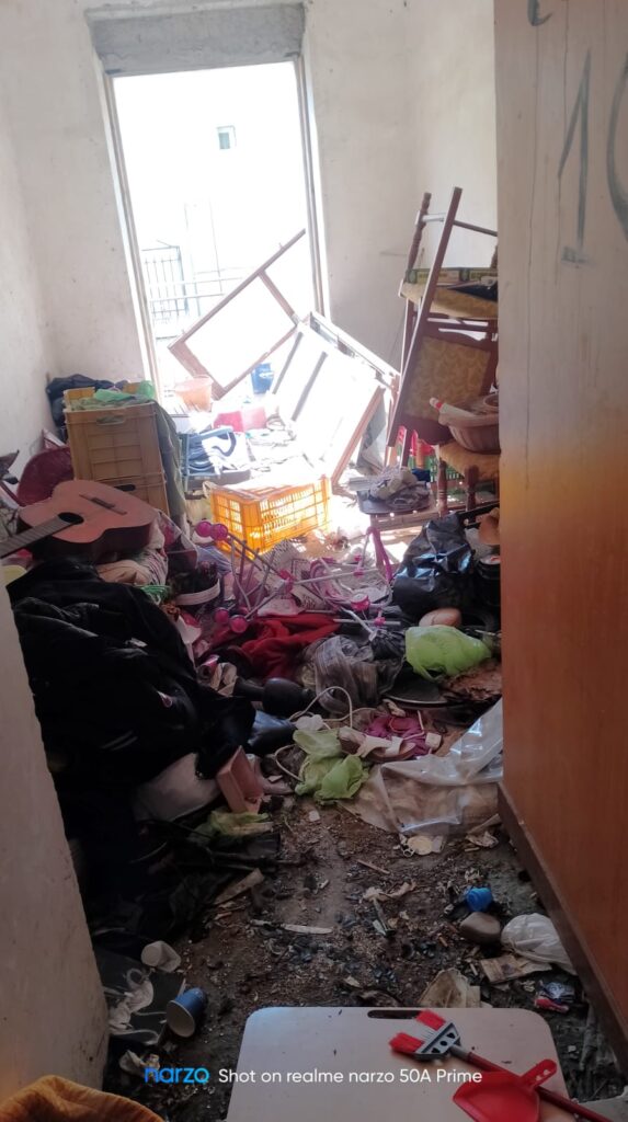Un gesto tanto sconcertante quanto pericoloso, che si somma a una lunga serie di comportamenti violenti, minacce, urla notturne, aggressioni, atti osceni e incendi dolosi. Il tutto in un contesto già segnato da un degrado ambientale che ha del disumano. Cumuli di rifiuti, siringhe, escrementi e odori nauseabondi hanno trasformato il condominio (dove vive l’uomo ) in una vera e propria trappola infernale per chi ci abita. I residenti hanno anche provato a ripulire, ma nulla la storia si ripete e chi ci convive e prova a riportare un minimo di normalità, rischia personalmente reazioni e gesti pericolosi.