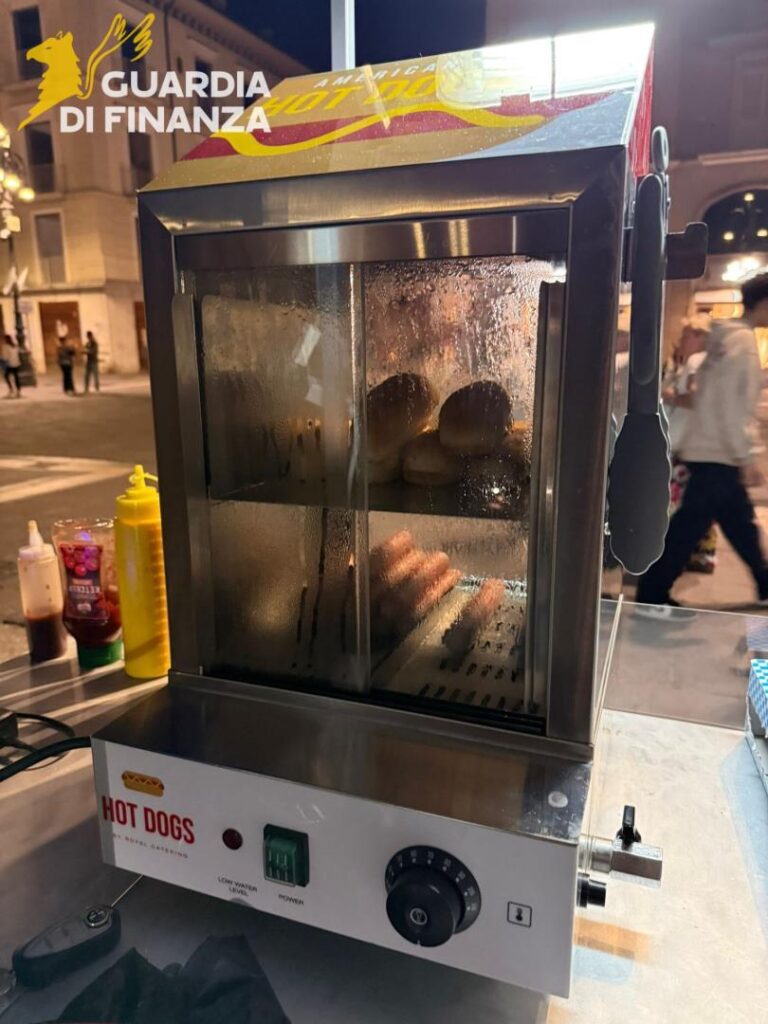hanno individuato un ambulante che operava in centro città svolgendo l’attività di preparazione e somministrazione di panini e vivande, in totale evasione d’imposta, senza il possesso della prescritta licenza commerciale di tipo alimentare e delle autorizzazioni sanitarie.L’attività commerciale abusiva, che veniva anche pubblicizzata sulla piattaforma social “Tik Tok” da parte della titolare che registra migliaia di follower, è stata interrotta con il sequestro amministrativo delle attrezzature e dei prodotti alimentari utilizzati (pezzi e/o confezioni di hot-dog, salse, panini, arachidi, pistacchi, patatine, caramelle, mandorle, nocciole), con contestuale segnalazione del trasgressore al Sindaco del Comune di Avellino, per commercio ambulante abusivo in violazione dell’art. 149, comma 2, della Legge Regione Campania del 21 aprile 2020, n. 7.