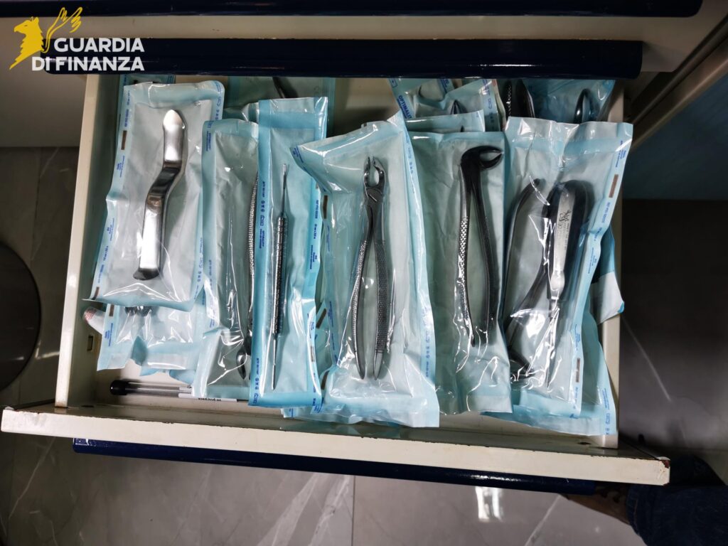 Nel corso dell’intervento a cura delle Fiamme Gialle del Gruppo di Avellino, i militari hanno constatato la presenza di n. 2 “riuniti dentistici”, di attrezzatura e strumentazioni specifica per la professione odontoiatrica tra cui un apparato radiografico portatile, di altri materiali ad uso dentistico, farmaci, nonché documentazione contabile ed extracontabile.