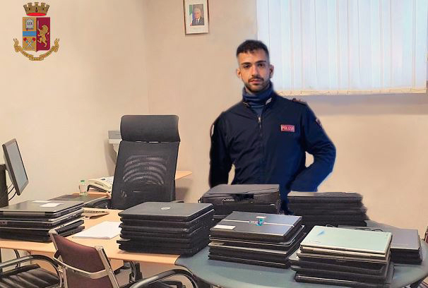 E’ di recente cronaca il furto compiuto presso il liceo Statale P.S. M di Via Ferrante lo scorso 15 novembre, allorquando ignoti si introducevano all’interno della struttura scolastica, trafugando 32 notebook per un valore commerciale di circa 15.000 euro. Le immediate indagini condotte dalla Squadra Mobile di Avellino, grazie anche all’acquisizione delle immagini del sistema di videosorveglianza consentiva però di identificare e denunciare alla Procura della Repubblica di Avellino due giovani irpini, ritenuti i presunti autori del furto, senza però rinvenire i personal pc trafugati. L’incessante attività investigativa condotta dagli operatori di Polizia ha però consentito di rinvenire tutto il materiale informatico asportato dal plesso scolastico. All’individuazione dei desktop si è giunti a seguito di un controllo effettuato nei pressi dell’autostazione AIR di Avellino. Nella circostanza uno dei giovani denunciati, soggetto noto alle Forze di Polizia, veniva notato scendere da un pullman proveniente da Napoli con un grosso zaino. All’atto del controllo e successiva perquisizione all’interno dello stesso venivano rinvenuti tre notebook i cui seriali risultavano tra quelli rubati alla scuola. I successivi accertamenti esperiti nella circostanza in Questura hanno consentito in breve tempo di individuare i restanti computer tutti occultati all’interno di un casolare abbandonato sito nella limitrofa periferia cittadina. La merce rinvenuta è stata riconsegnata all’istituto scolastico.