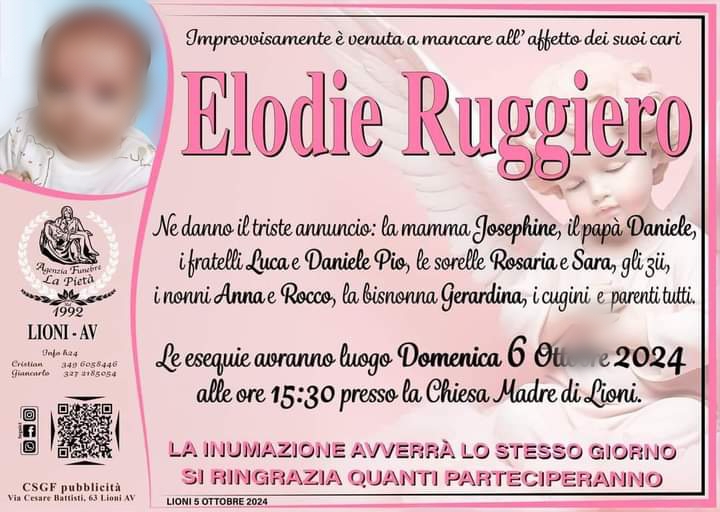 Tragedia a Lioni – Nel pomeriggio di oggi, alle 15:30, la comunità di Lioni si riunirà per dare l’ultimo saluto a Elodie, una neonata di quasi due mesi, durante i funerali che si svolgeranno presso la Chiesa Madre. La piccola è stata tragicamente colpita da un episodio di rigurgito fatale, un evento raro ma purtroppo possibile nei neonati, che ha avuto esiti devastanti per la sua famiglia.