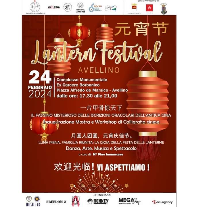 Sabato prossimo, 24 febbraio dalle ore 17:30 alle 21:00, presso il Complesso Monumentale Ex Carcere Borbonico di Avellino per la prima volta si celebrerà il元宵节Yuánxiāo Jié Festival delle Lanterne che, secondo la tradizione popolare cinese, chiude i festeggiamenti del Capodanno Cinese (春节Chūnjié Festa di Primavera) il quindicesimo giorno del primo mese del calendario lunare con la prima luna piena dell’anno. Tale festività tradizionalmente ma ancor oggi rappresenta l’occasione per stare insieme in famiglia, con l’augurio che essa resti unita ed in armonia, prima di tornare alla vita di tutti i giorni e vi è l’usanza di recarsi di sera in gruppi ad ammirare le lanterne colorate (su cui vi sono scritti degli indovinelli) e di mangiare i profumati e gustosi 元宵 yuánxiāo (palline di farina di riso glutinoso, ripiene di zucchero e di frutta secca che vengono bollite in acqua).