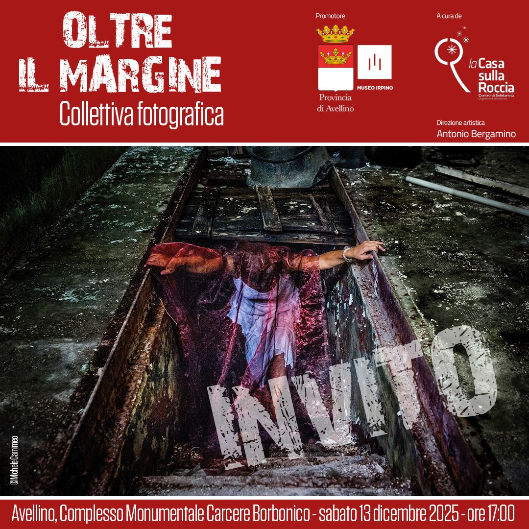 “Oltre il Margine” è il titolo della collettiva fotografica che sarà presentata domani mattina, alle 10, presso la sala Grasso della Provincia di Avellino. L’iniziativa, che rientra nel progetto “Un anno di mostre al Museo Irpino”, è promossa da “Casa sulla Roccia”, con Antonio Bergamino direttore artistico. Sarà inaugurata sabato pomeriggio, sabato 13 dicembre, alle 17 al Carcere Borbonico.