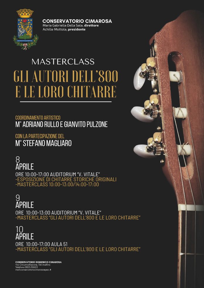 Un evento da non perdere, quello che sarà presentato lunedì 8 aprile (ore 10.00) dai Maestri Adriano Rullo e Gianvito Pulzone, docenti di chitarra del Conservatorio di Avellino, che guideranno il pubblico attraverso una esplorazione dei preziosi strumenti musicali, a cui seguirà un dibattito appassionato sulle caratteristiche uniche di questi strumenti storici.