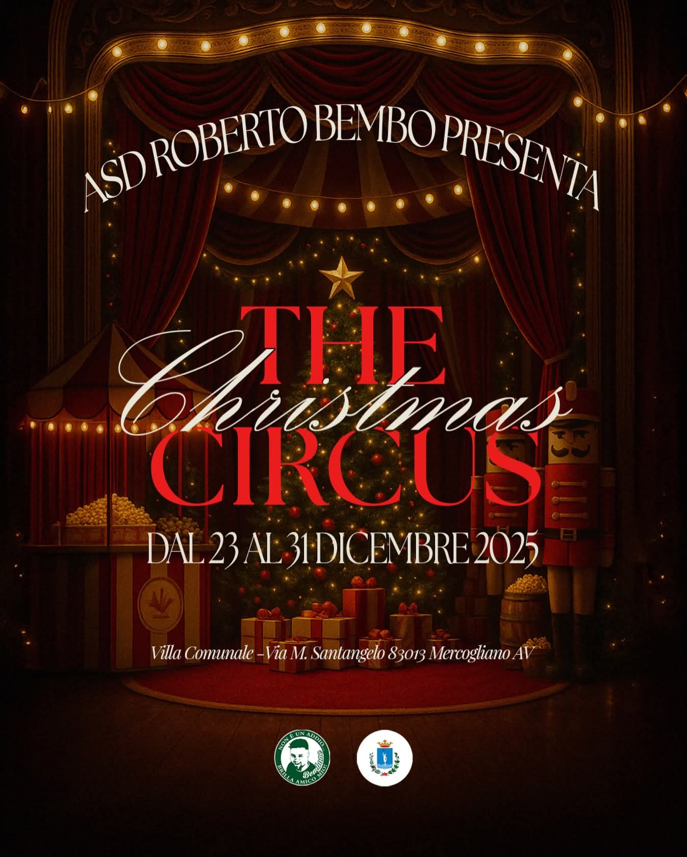 Mercogliano, in Villa Comunale arriva il Christmas Circus: dal 23 al 31 dicembre un Natale di festa e condivisione – Dal 23 al 31 dicembre la Villa comunale M. Santangelo si trasformerà in un vivace spazio di incontro e intrattenimento grazie a The Christmas Circus, l’iniziativa natalizia organizzata dall’Asd Roberto Bembo con il sostegno dell’Amministrazione comunale.
