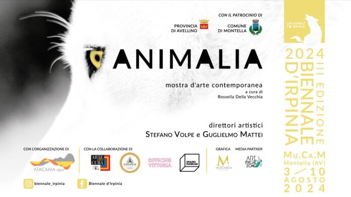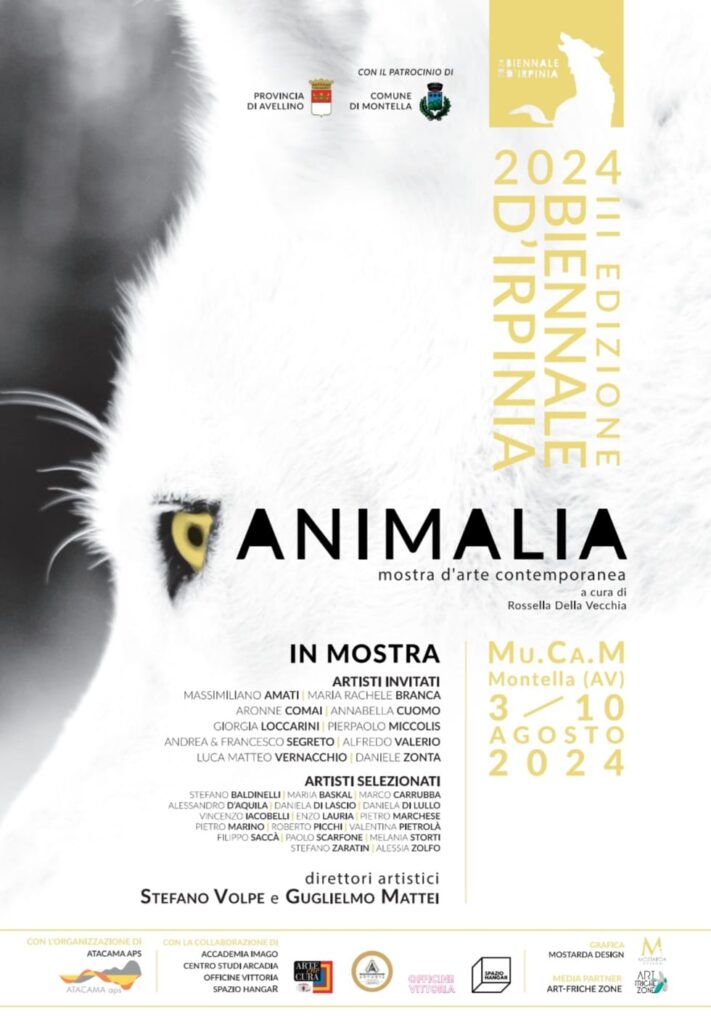 Selezionati i 16 artisti provenienti da tutta Italia, tutto è pronto per inaugurare la III Edizione della Mostra d’arte contemporanea “Biennale d’Irpinia“ che quest’anno sarà incentrata sul tema “Animalia” e che vedrà esposte opere pittoriche, scultoree, installazioni e video. A questi artisti, selezionati su oltre 60 candidati dalla giuria composta da Maria Rosaria Di Virgilio (Accademia Imago), Alessandra Gatti (officine Vittoria), Rosaria Madeo (Spazio Hangar) e Arianna Sera (Centro Studi Arcadia), si aggiungeranno i 10 artisti invitati dai direttori artistici.