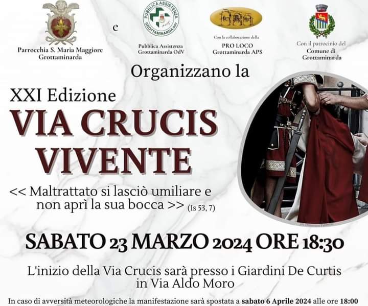 Dopo la toccante rappresentazione dello scorso anno ripresa dopo la pausa dovuta alla pandemia, ritorna anche quest’anno a Grottaminarda la tradizionale “Via Crucis Vivente”, l’appuntamento è, come consuetudine, il sabato prima delle Palme e quindi sabato 23 marzo.