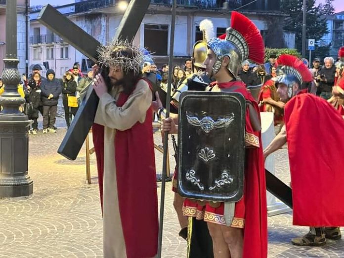 La rappresentazione recitata della Passione di Cristo inizierà alla 18:30 e quest’anno si svolgerà presso i Giardini De Curtis, partendo dalle Arcate dell’ex Chiesa del Carmine, con varie soste per rappresentare i diversi momenti, e terminare, con il Calvario, sulla salita che porta in Piazza XVI Marzo.