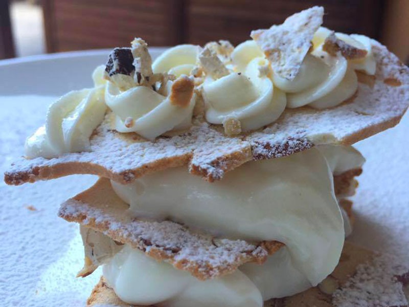 Accanto ad essa troviamo le sottilissime sfogliatine alle mandorle, biscottini fragranti che si accompagnano perfettamente a un passito o a un vino liquoroso. Piccoli capolavori di equilibrio, capaci di chiudere il pasto con leggerezza e armonia.