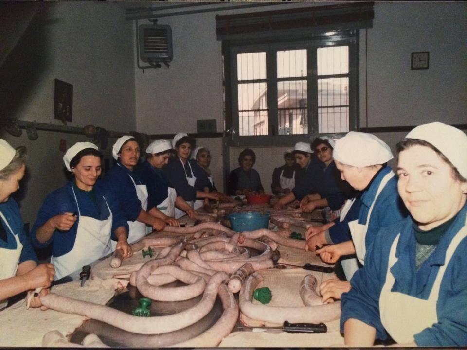 In un’epoca in cui la produzione era totalmente manuale, ogni fase veniva seguita con cura artigianale, dall’accurata selezione delle carni fino all’insacco nel caratteristico budello crespone, elemento distintivo che ancora oggi rappresenta uno dei segreti della qualità del prodotto.
