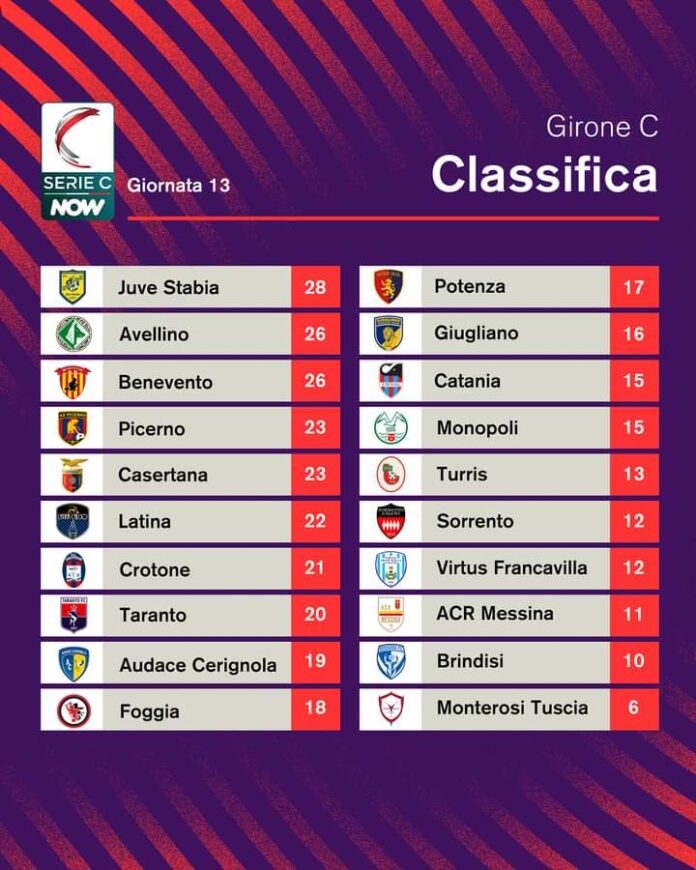 CLASSIFICA AGGIORNATA SERIE C, GIRONE C: AVANZA L’AVELLINO, JUVE STABIA ANCORATA AL PRIMO POSTO