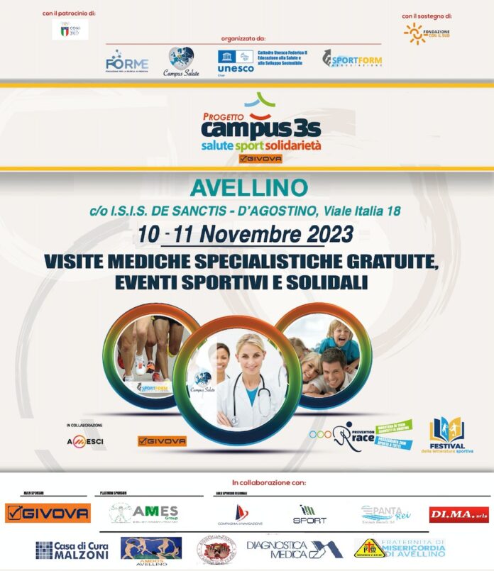 Venerdì, 10 novembre, presso la sede dell’Istituto I.S.I.S. de Sanctis – D’Agostino, alle ore 10.00 si terrà la conferenza stampa di presentazione dell’ottava edizione del Campus 3 S: Salute, Sport e Solidarietà. La manifestazione, fortemente voluta dall’avvocato Tommaso Mandato, ha subito visto l’entusiastica collaborazione del dirigente dell’I.S.I.S. De Sanctis – D’Agostino, sede Amatucci, l’Ingegnere Pietro Caterini. Inoltre, alla manifestazione si sono unite le Associazioni di volontariato Amos Avellino, le Mani sui Cuori e la Clinica Malzoni. Durante l’evento, sarà presentato anche il secondo libro realizzato dall’avvocato Tommaso Mandato.