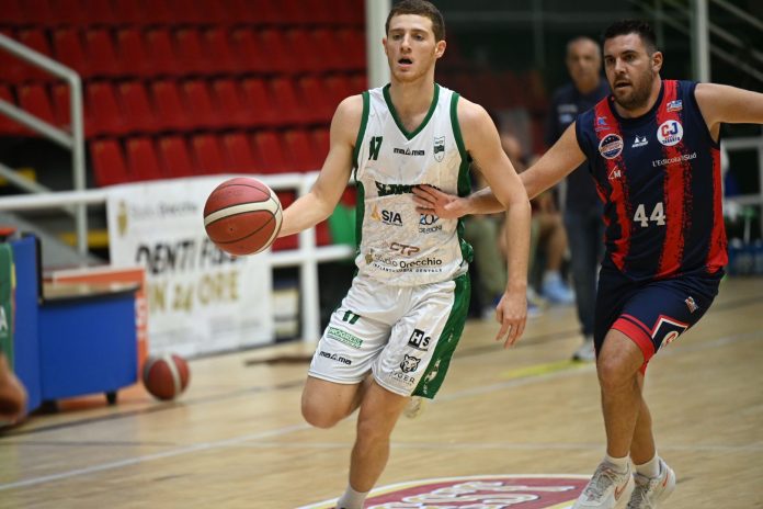 Terzo periodo che inizia con due triple dei biancoverdi realizzate da Stefanini e Juskas e +30 di vantaggio per il roster del patron Trasente. Giovara non vuole arrendersi e cerca di spronare i suoi che sono in balia dei lupi.
