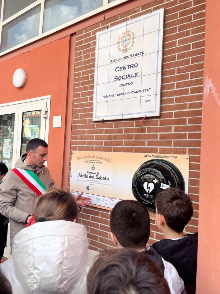 AIELLO DEL SABATO – Prosegue l’impegno dell’amministrazione comunale nel potenziamento dei servizi per la tutela della salute pubblica. È stato installato un defibrillatore automatico esterno (DAE) nell’area del Centro Sociale “Madre Teresa di Calcutta”, a pochi passi dalla Biblioteca Comunale, punto di riferimento per la vita sociale e culturale del paese.
