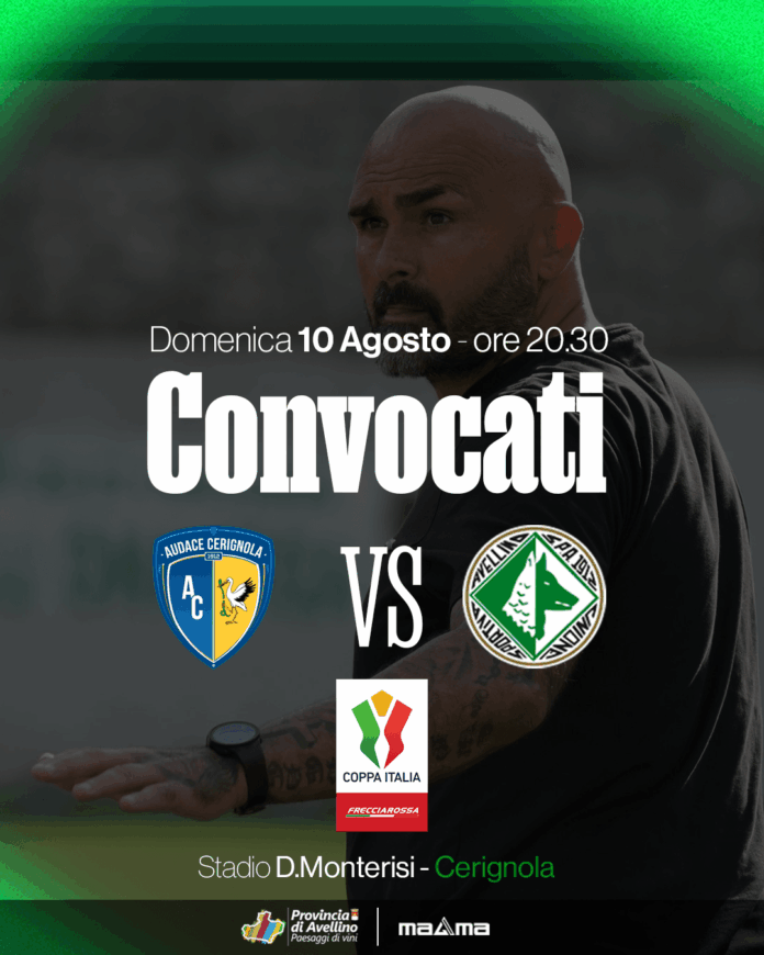 In vista del match tra Audace Cerignola ed Avellino, valido per il turno preliminare di Coppa Italia Frecciarossa, mister Raffaele Biancolino ha diramato la seguente lista di convocati: