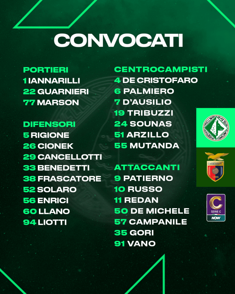 Avellino -Casertana- In vista del match tra Avellino e Casertana, valido per la nona giornata del campionato di serie C Now, mister Raffaele Biancolino ha diramato la seguente lista di convocati:
