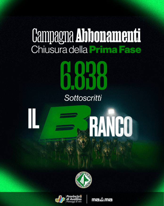 Branco – Si è conclusa ieri, venerdì 18 luglio 2025, la prima fase della campagna abbonamenti “Branco” valida per assistere alle gare del campionato di serie B dell’U.S. Avellino 1912 per la stagione 2025/2026.