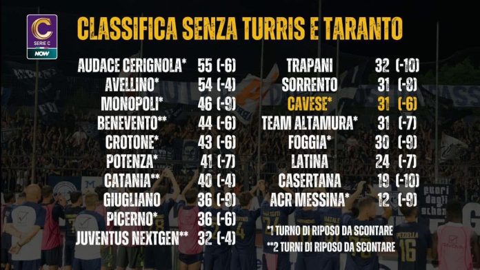 Dopo l’esclusione dal campionato del Taranto, viene esclusa anche la Turris e l’Avellino sorride.Ecco come cambia la classifica